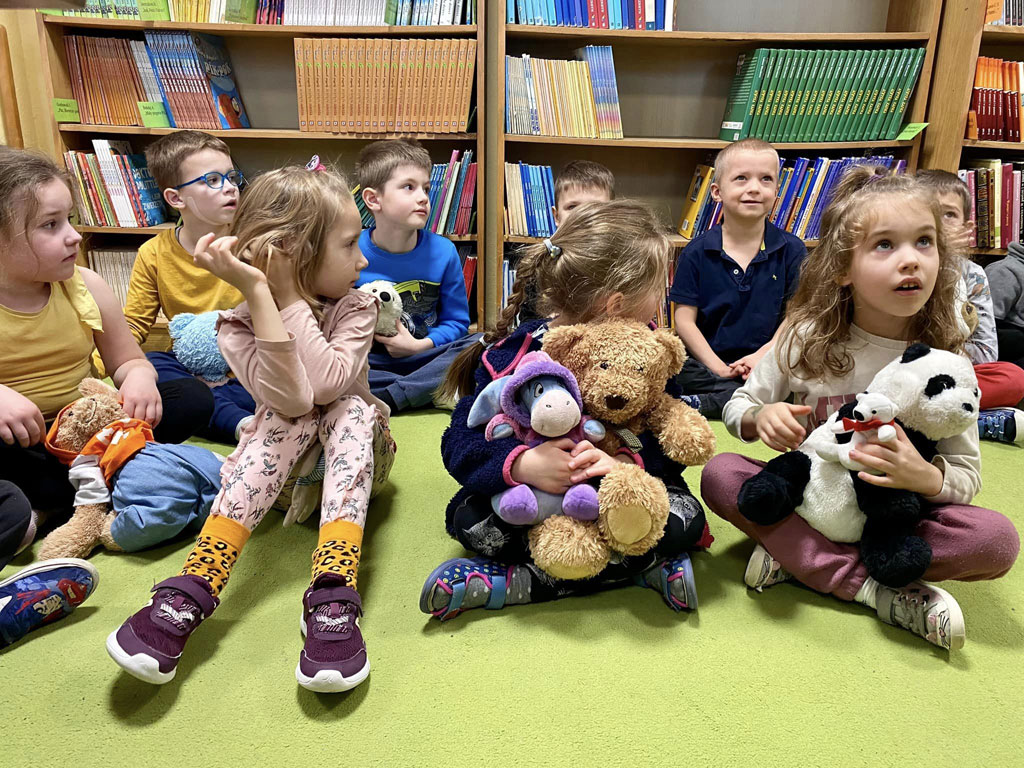 Z okazji Dnia Pluszowego Misia biblioteka szkolna zachęca do wypożyczania książek o misiach.