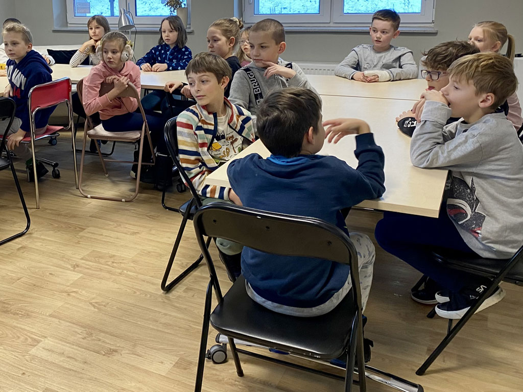 Klasa III c wybrała się na krótki spacer do sąsiadującej z nami Miejskiej Biblioteki Publicznej w Gdyni (Filia nr 6 - Biblioteka Cisowa) i wzięła udział w warsztatach, które prowadziła Pani Veranika z Białorusi. Podczas zajęć uczniowie rozmawiali,