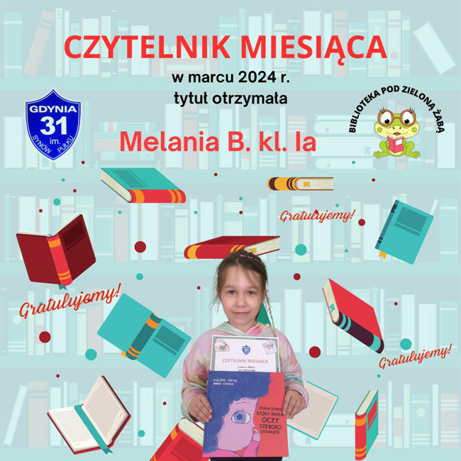 W marcu czytelniczką miesiąca w naszej szkole została Melania z Ia.