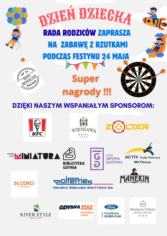 Na naszych Zwycięzców czekają już sponsorzy z Dużym sercem dla małych dzieci, którzy przygotowali Mega Fajne nagrody, z których skorzystają całe klasy :-).