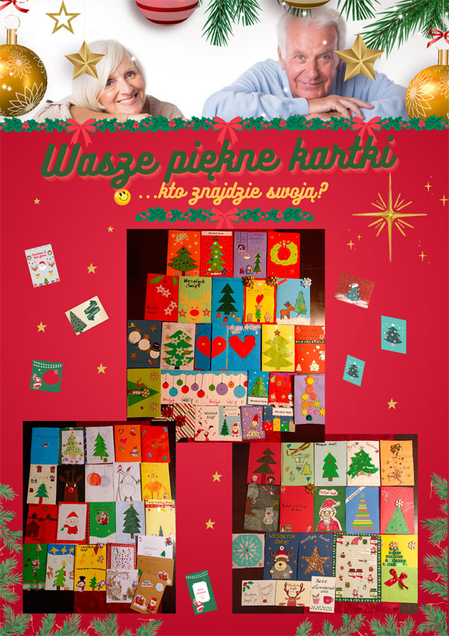 Za wykonanie pięknych kartek Bożonarodzeniowych, które zostały przekazane przemiłym Seniorom w trzech ośrodków i na pewno spowodowały niejedną iskierkę radości i ciepła w sercach przemiłych seniorów. Jedna karteczka wykonana od serca, a może tak wiele dobra zdziałać... :-)