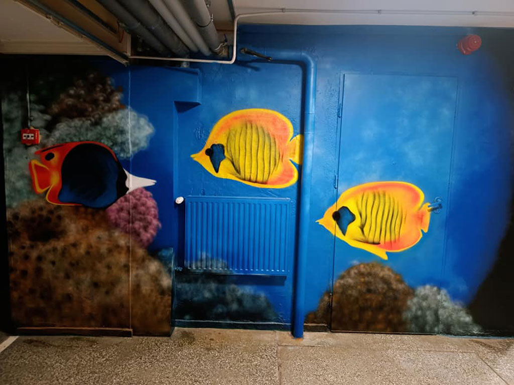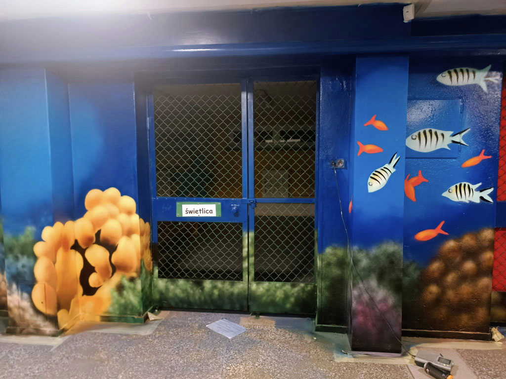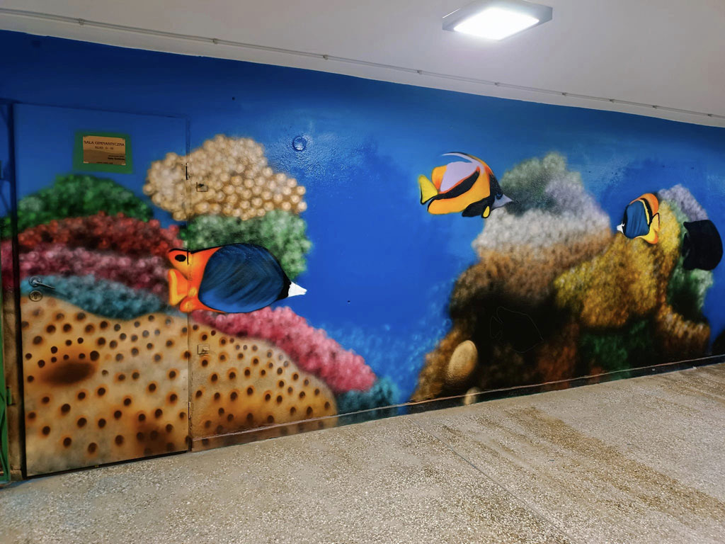 Dzięki talentowi p.Patryka Łukaszuk z Paka Art Studio z Lęborka udało się nam zmienić szatnie dziecięce klas 0-3, w podwodny świat :-).