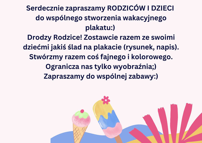 Zachęcamy do wspólnego stworzenia wakacyjnego plakatu🕶🌴🌞🍦Plakat znajduje się na drzwiach sali 10c😀