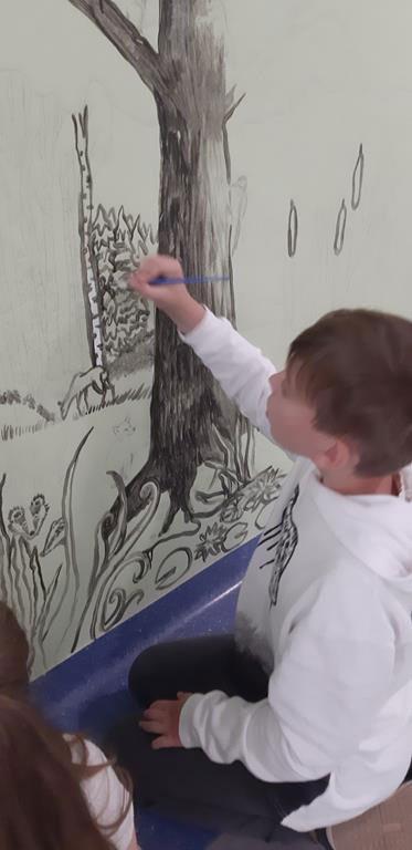 W tym tygodniu stworzyliśmy makietę jesiennego lasu. Dzieci wykonały drzewa i grzybki,