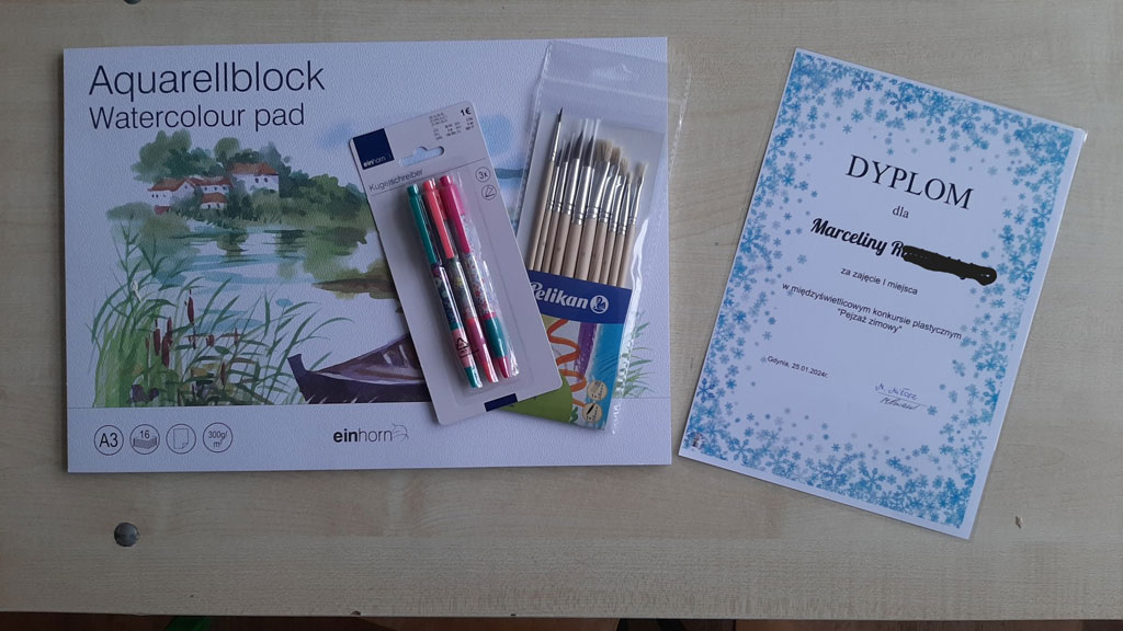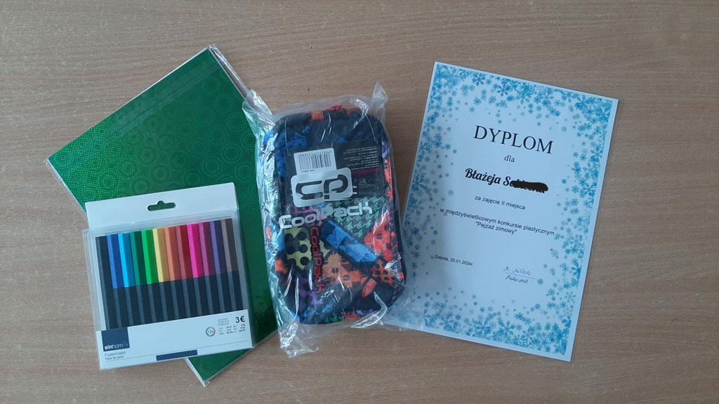 Nagrody i dyplomy w międzyszkolnym konkursie "Zimowy pejzaż" wręczone