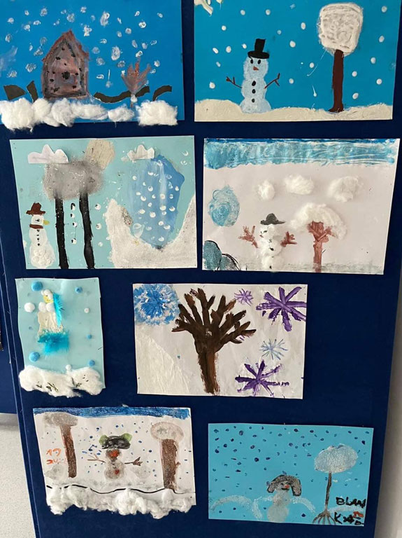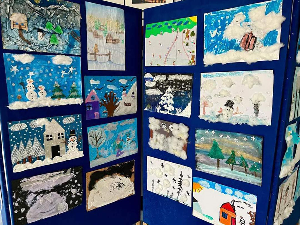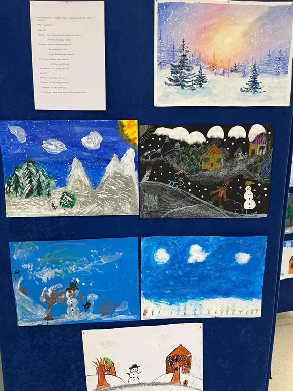 Uczniowie, którzy zostali docenieni w międzyszkolnym konkursie plastycznym "Zimowy pejzaż" organizowanym przez SP nr 16
