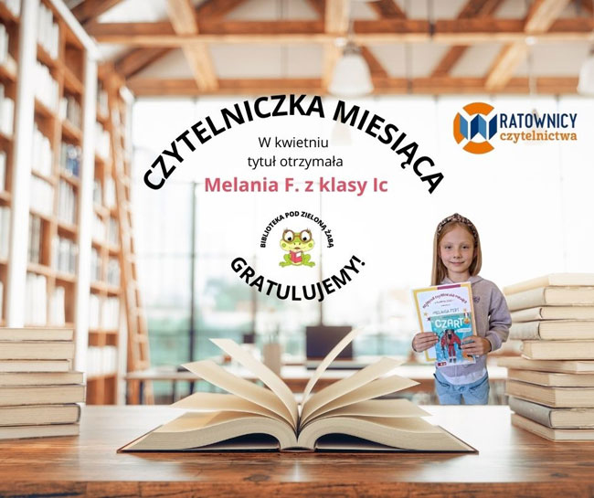 Z wielką radością ogłaszamy, że tytuł Czytelniczki Miesiąca trafia do Melanii F. z klasy Ic! 🏆