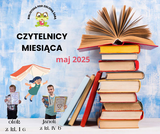 🎉 W maju 2025 roku nasze regały najczęściej odwiedzali i strony najchętniej przewracali dwaj niezrównani czytelnicy - Olek K. z Ic oraz Janek S. z IVb!