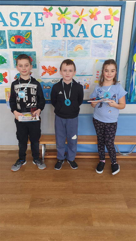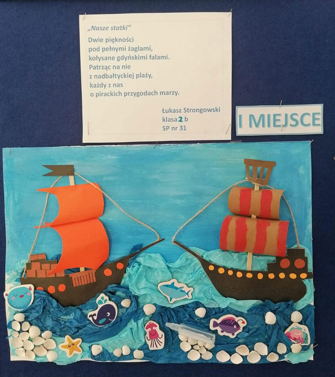 2. Dwie zwycięskie prace w konkursie świetlicowym "Morskie opowieści" Łukasza S. z kl. 2b oraz Klaudii P. z kl. 1c reprezentują naszą świetlicę w literacko-plastycznym konkursie międzyszkolnym