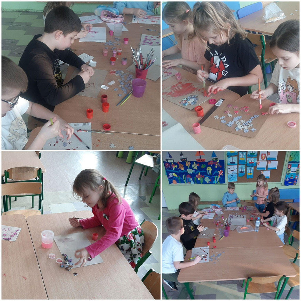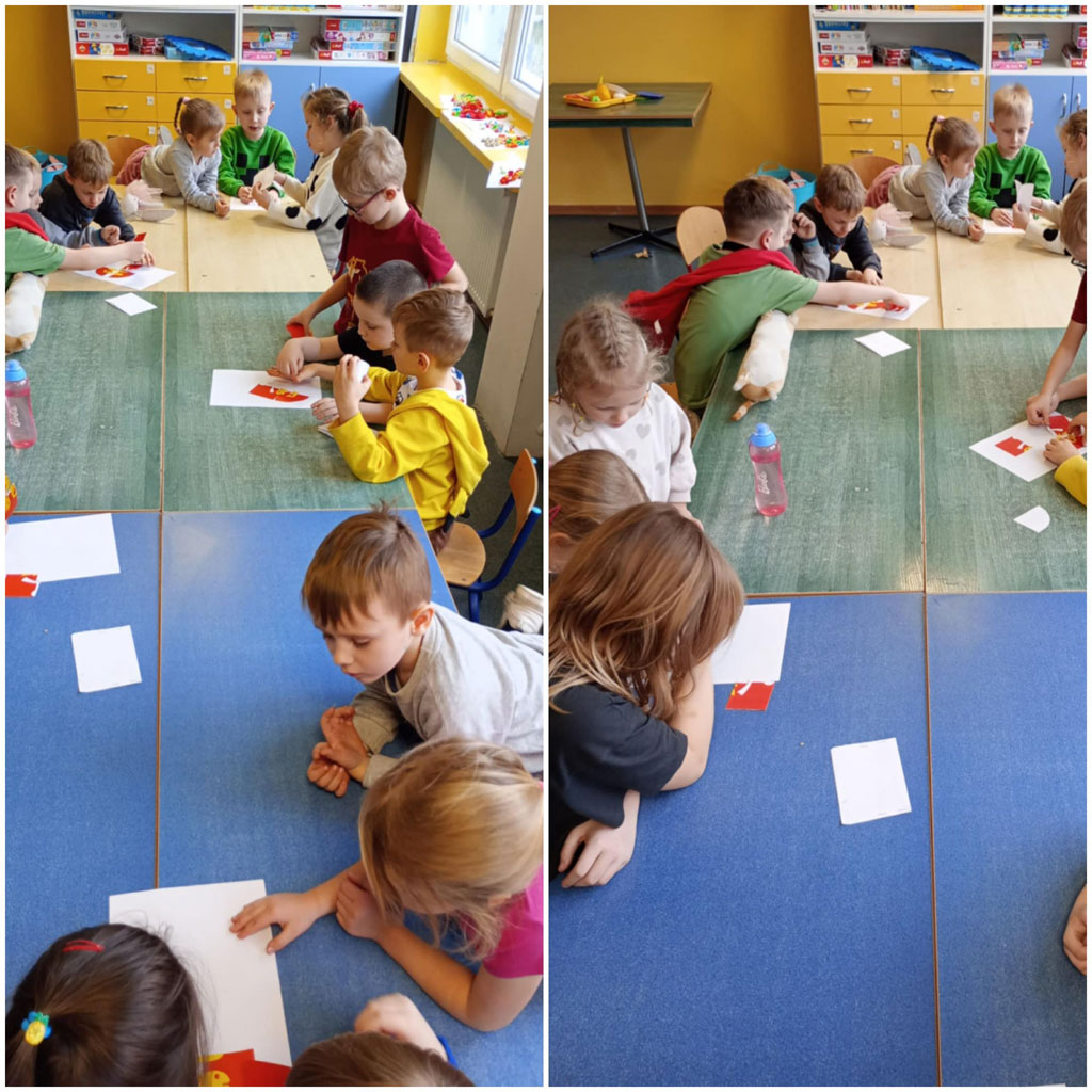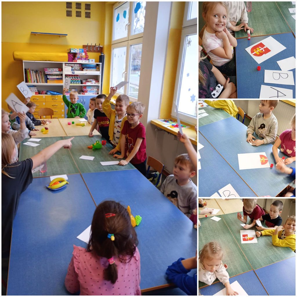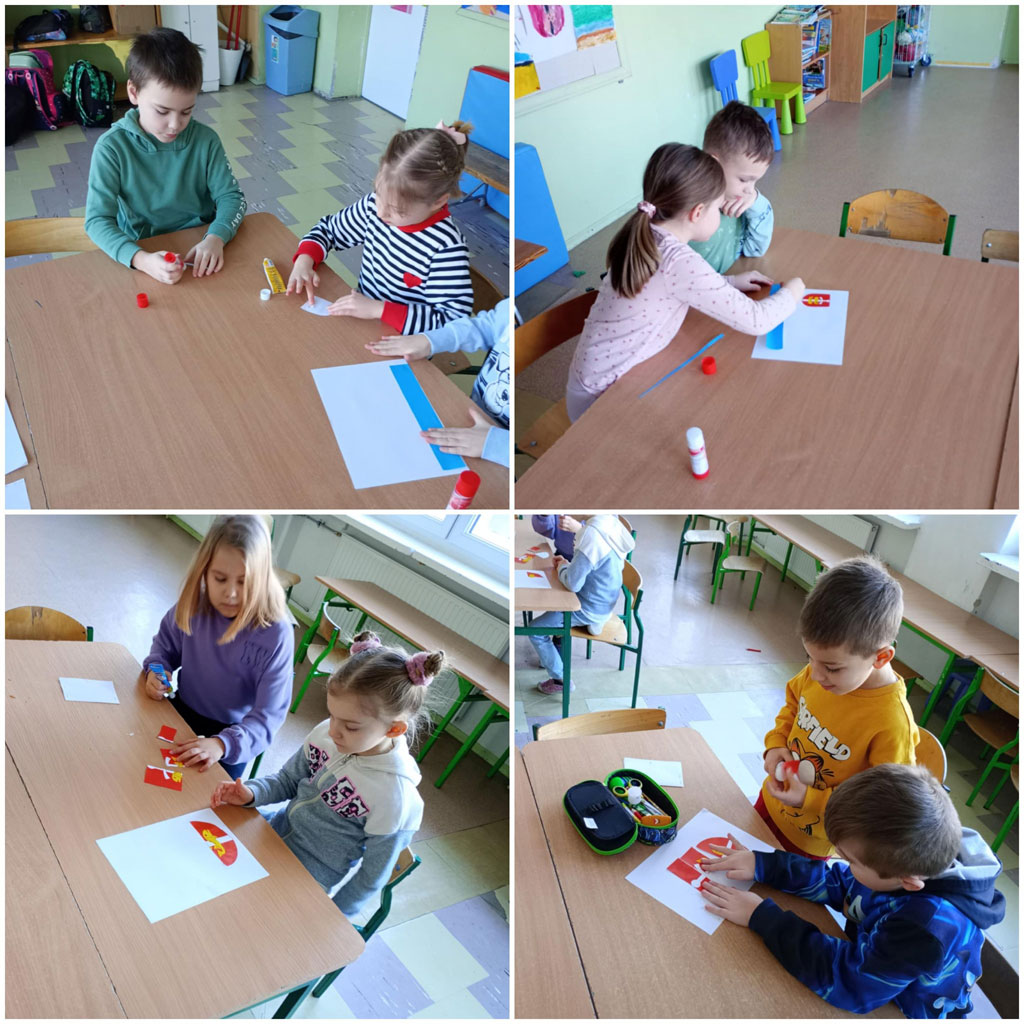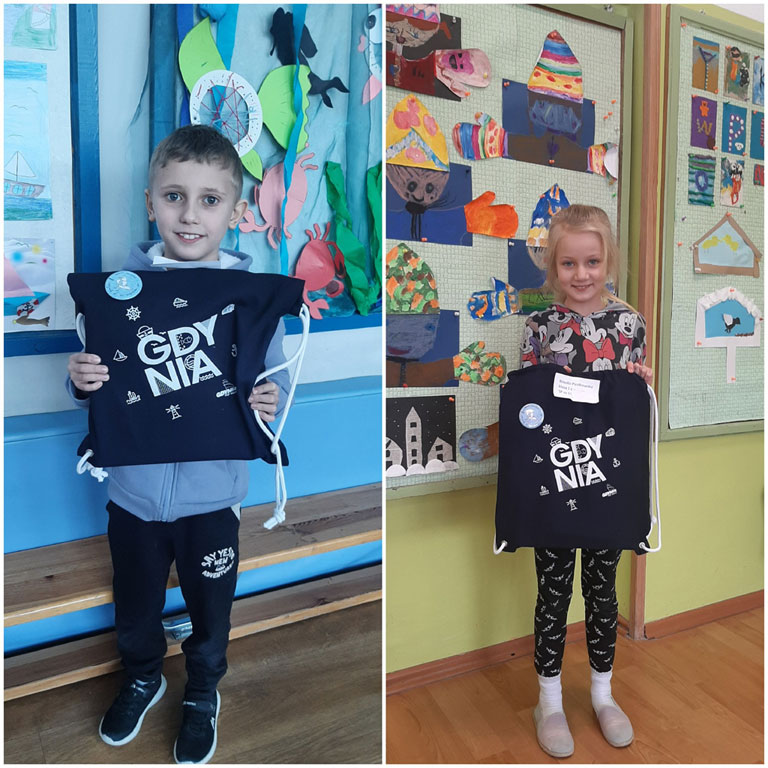 Klasy 0-I również wzięły udział w mini konkursie, który polegał na rozwiązywaniu zagadek oraz układaniu puzzli z wizerunkiem herbu i flagi Gdyni. Wszyscy uczestnicy otrzymali dyplomy i medale😀