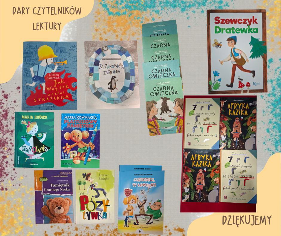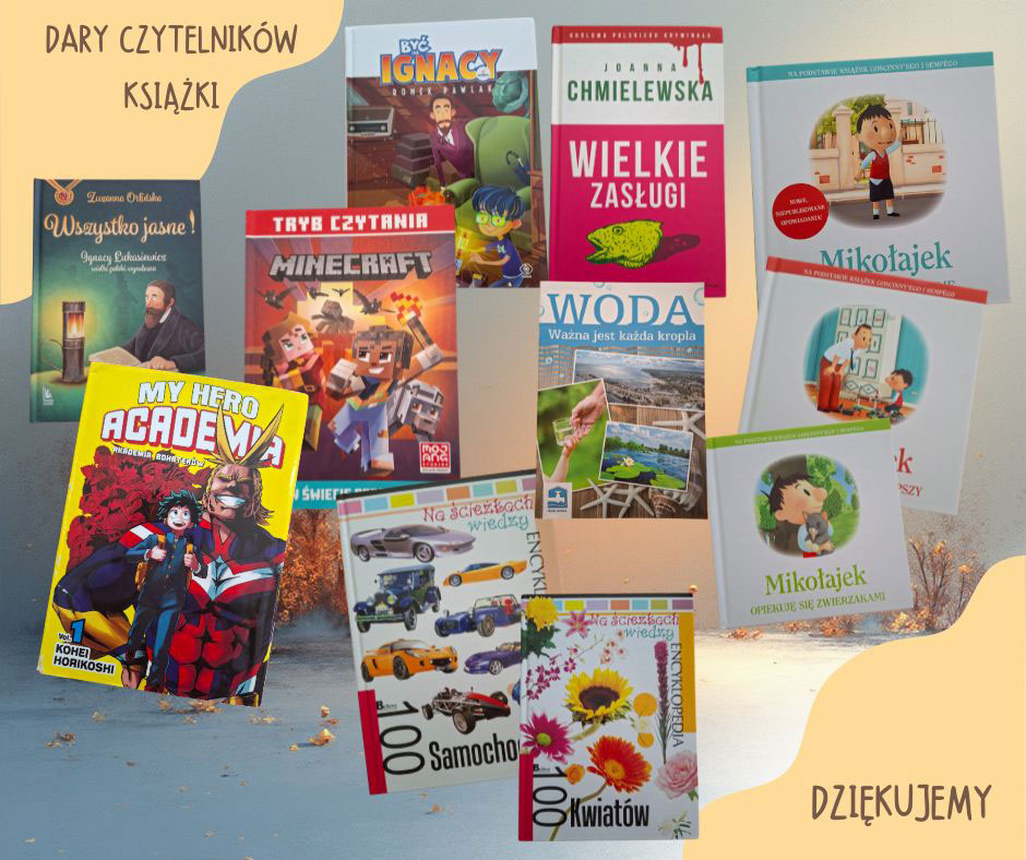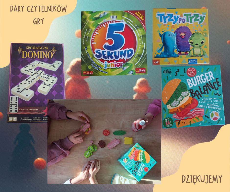 z całego serca dziękujemy za wszystkie dary przekazane naszej bibliotece – książki i gry, które wzbogaciły jej zbiory.