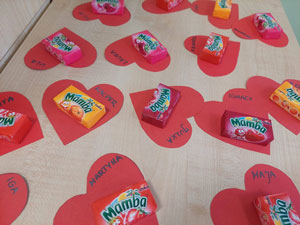 Uczniowie klasy 1C dzielnie i z ogromnym zaangażowaniem posegregowali wszystkie listy walentynkowe.