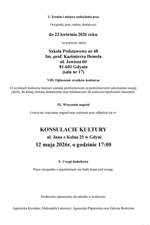 Zachęcamy całym sercem uczniów klas 0 i 1 do udziału w niesamowitym i bardzo znanym w Gdyni konkursie plastycznym zorganizowanym przez Szkoła Podstawowa nr 48.