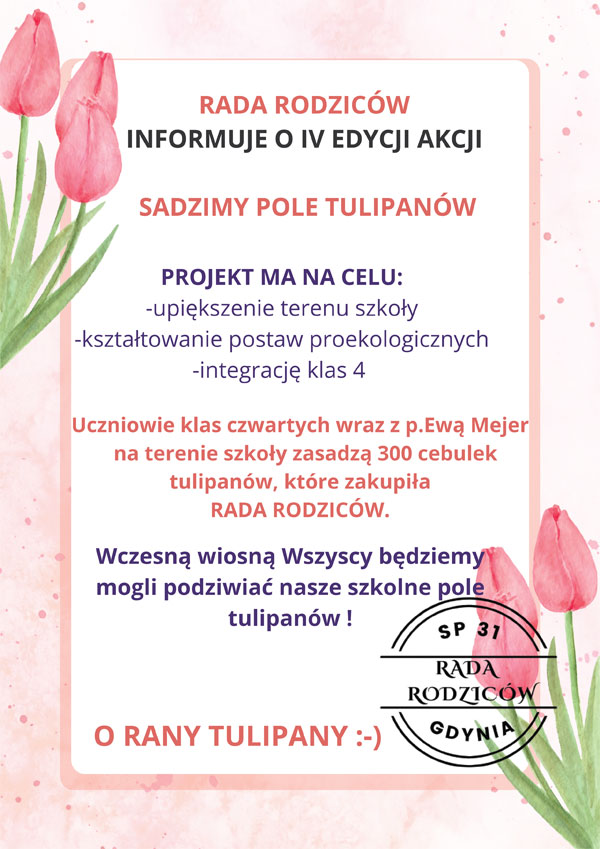 Za nami akcja Sadzimy Pole Tulipanów 🌷🌷🌷 organizowana przez Radę Rodziców SP 31.