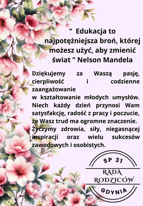 Rada Rodziców serdecznie dziękuje p. Mejer za zaangażowanie i współpracę.