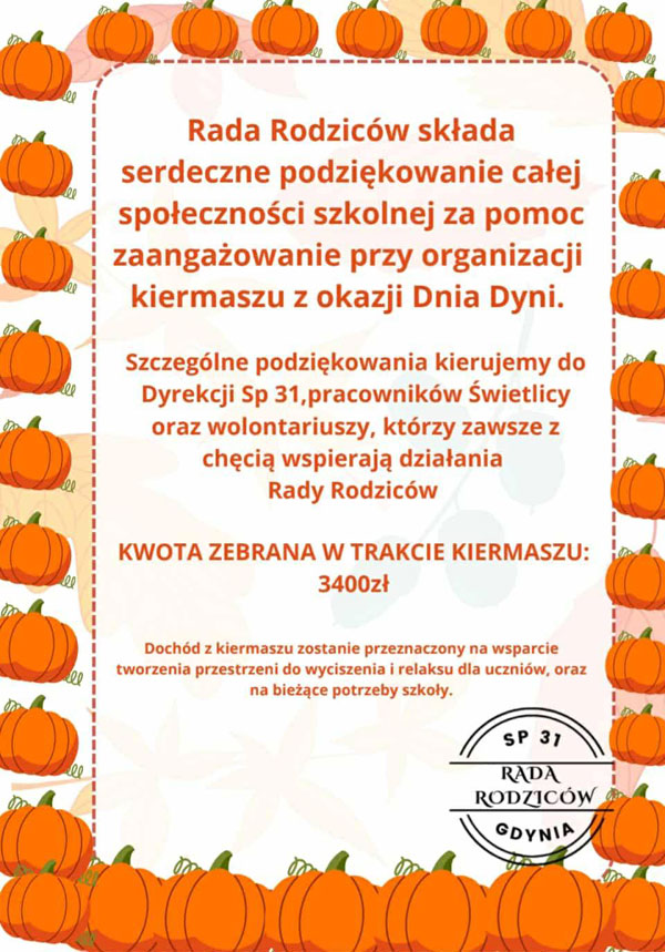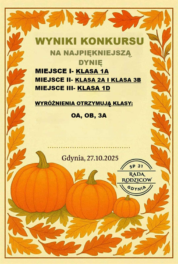 Za nami konkurs na "Najpiękniejszą dynię" organizowany przez Radę Rodziców SP 31.
