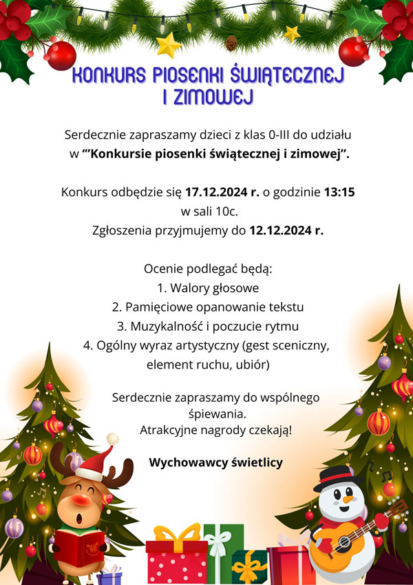 Dozwolone są maksymalnie 3 zwrotki (plus refren) wybranej piosenki/kolędy/pastorałki🎄⭐