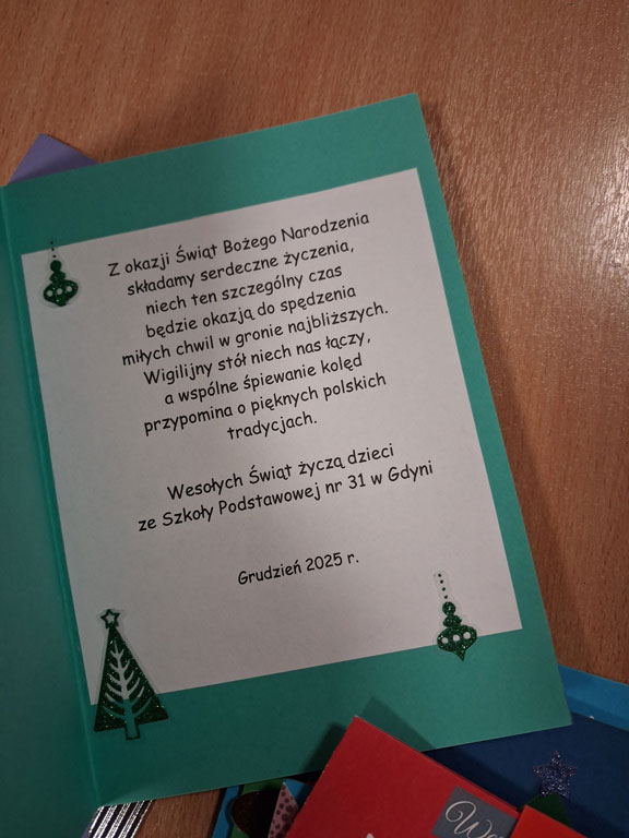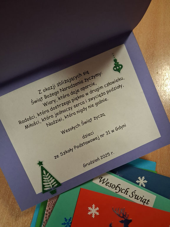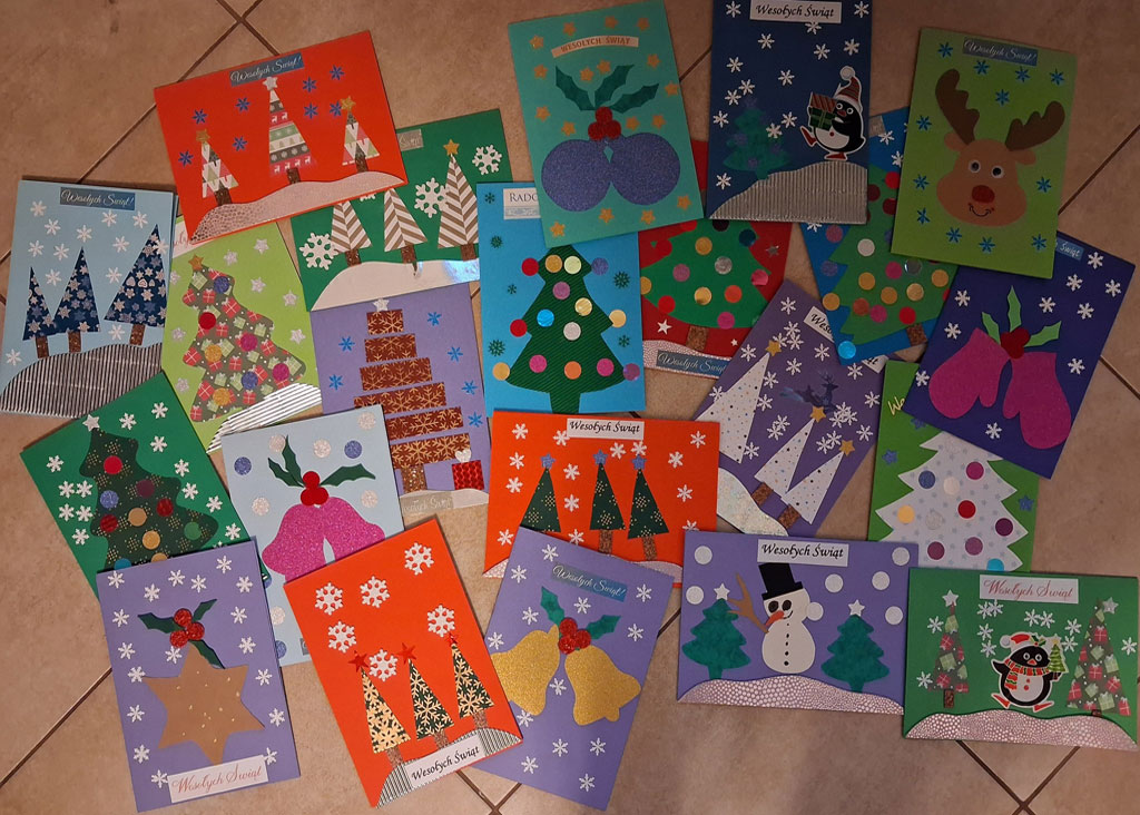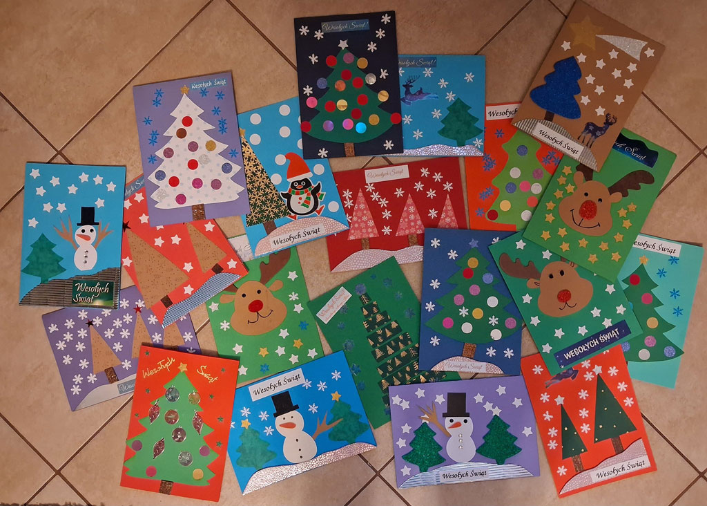Dzieci w ramach zajęć w świetlicy z ogromną radością i zaangażowaniem przygotowały 42 świąteczne kartki z życzeniami. W sobotę te piękne kartki zostały wysłane do Fundacji Pamięci Narodów,