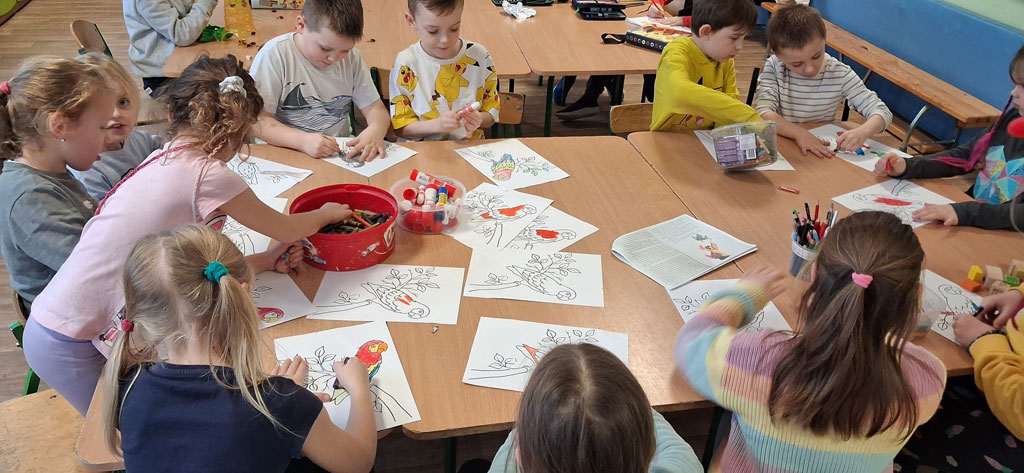 W ramach współpracy z biblioteką szkolną w świetlicy organizowane były cotygodniowe zajęcia dla dzieci prowadzone przez Panią Agnieszkę Wolańską-Matuszczak,