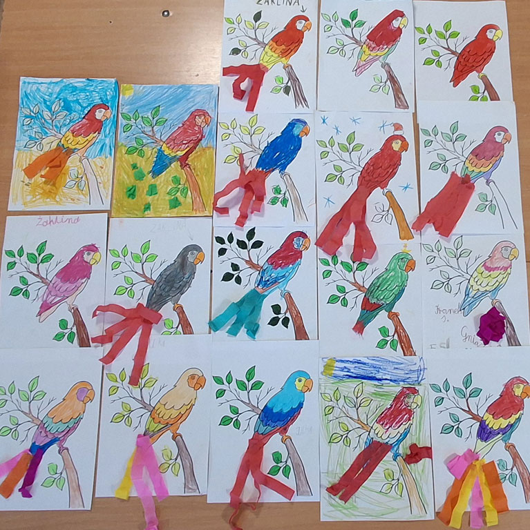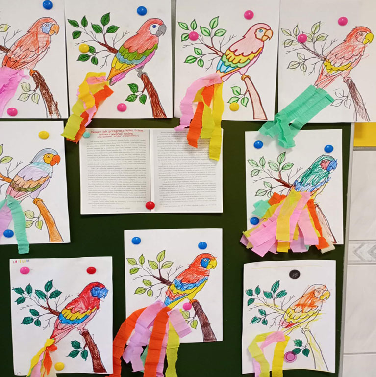 Na koniec wykonaliśmy pracę plastyczną głównej bohaterki bajki - papugi Żako🦜