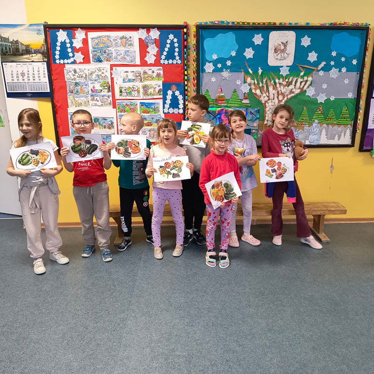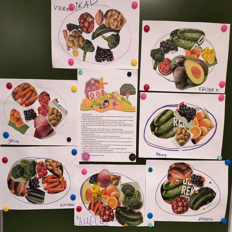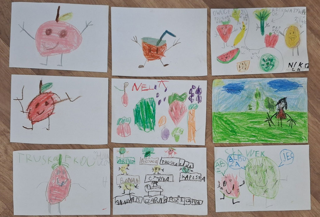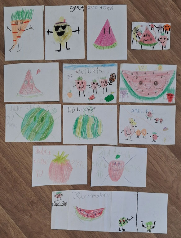 Na koniec stworzyliśmy talerze pełne witamin oraz rysunki ulubionych warzyw i owoców w sposób zachęcający do ich spożycia😀Prawda, że wyglądają smakowicie?😀