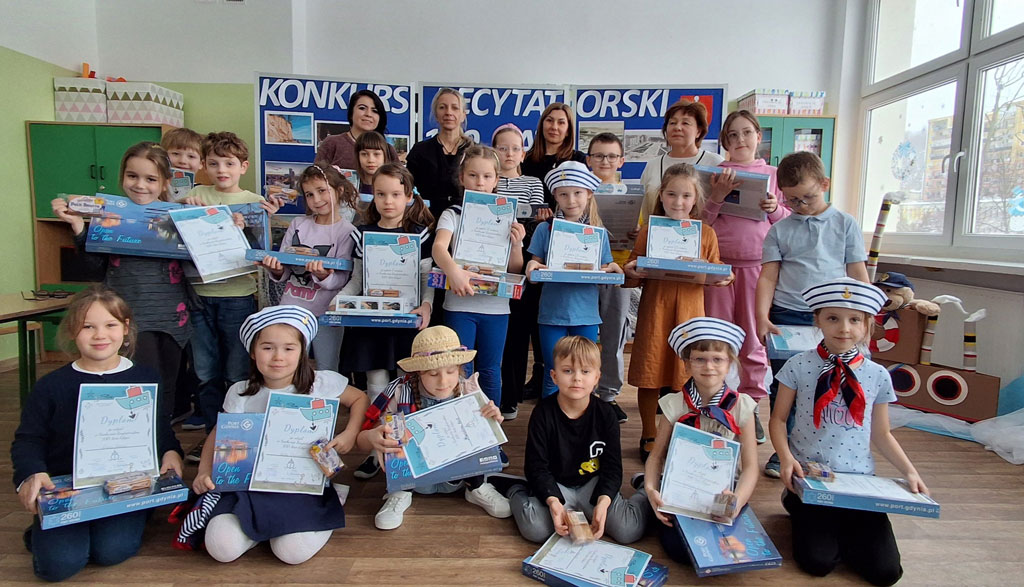 Dzieci z klas 0-3 zaprezentowały wybrane przez siebie wiersze o tematyce marynistycznej. Wysłuchaliśmy również wierszy autorskich, napisanych przez dzieci.
