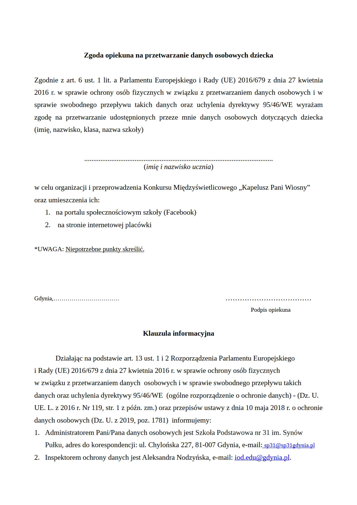"Gdynia za 100 lat" organizowany przez SP nr 40 w Gdyni.