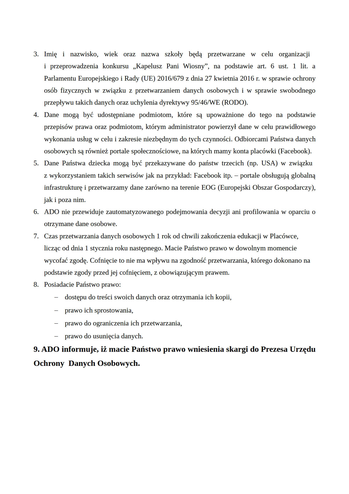 Celem projektu jest tworzenie dzieciom warunków do rozwijania kreatywności i aktywności twórczej.