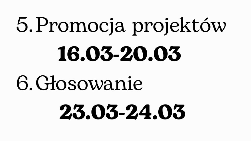 Samorząd Uczniowski odwiedzi wszystkie klasy jutro (24. 03.) i przekaże karteczki do głosowania. Na każdej z nich należy wpisać numer wybranego projektu.