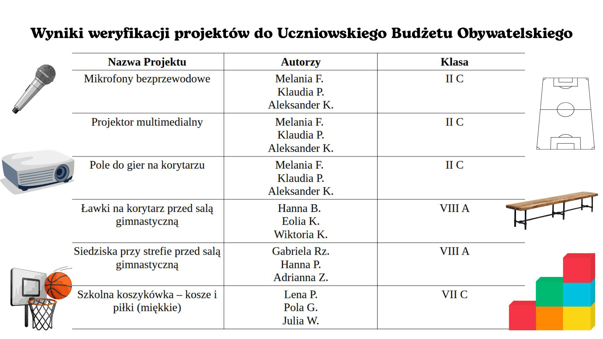 Po podliczeniu wszystkich głosów wyłoniono zwycięskie projekty: