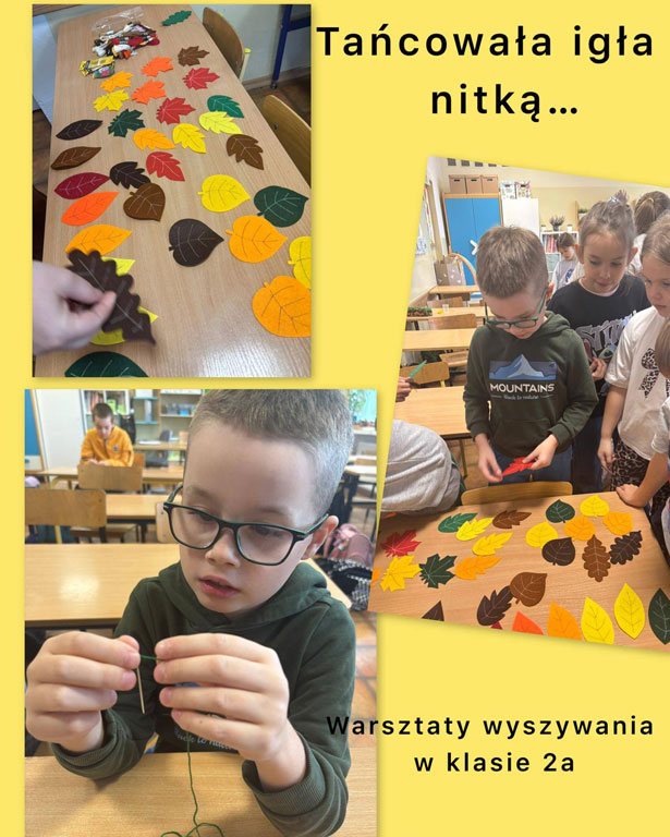 Warsztaty wyszywania pod hasłem „Tańcowała igła z nitką” w klasie 2a.