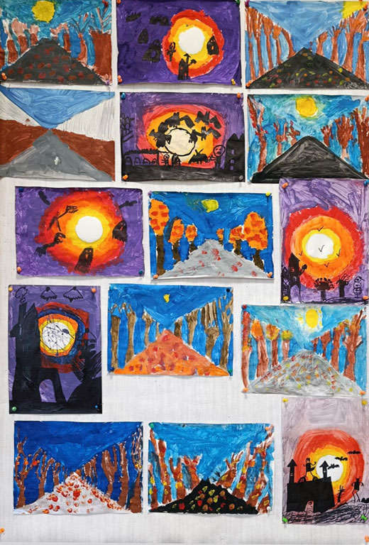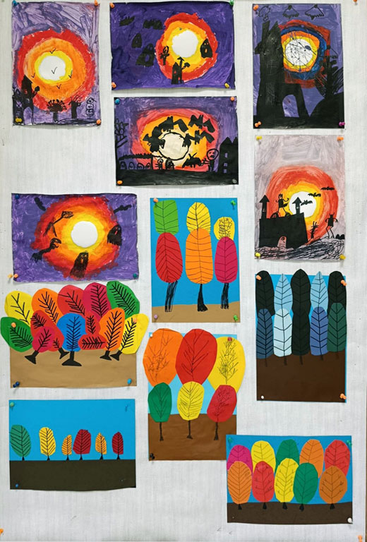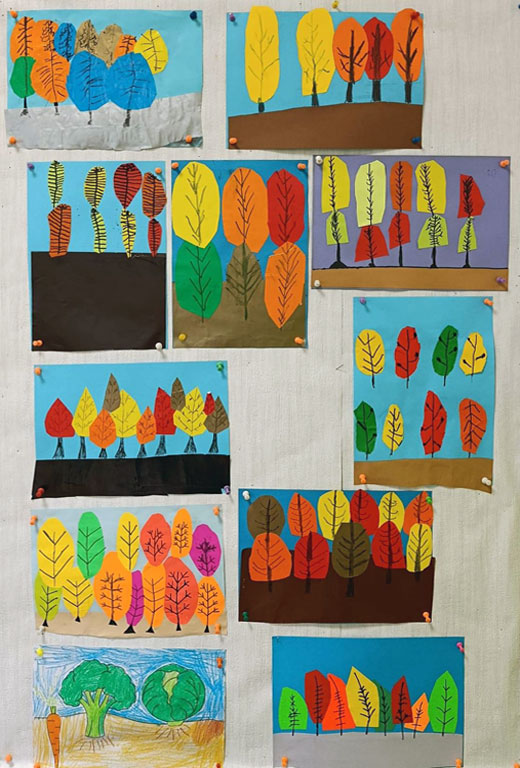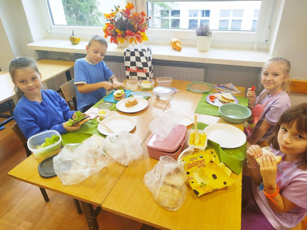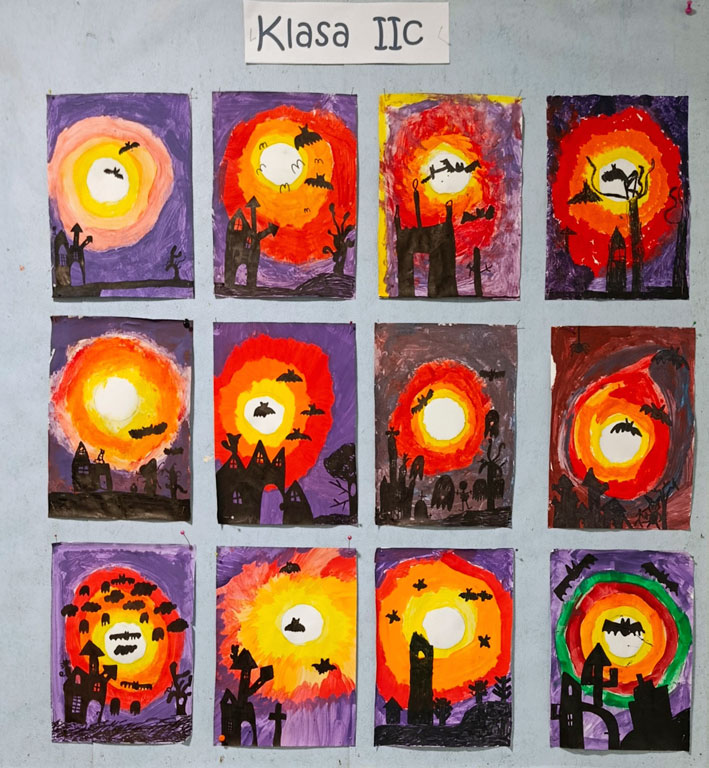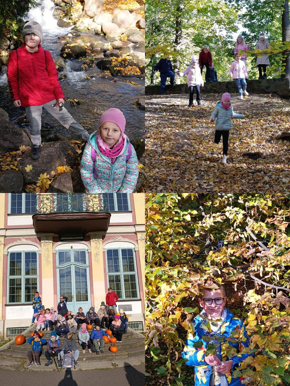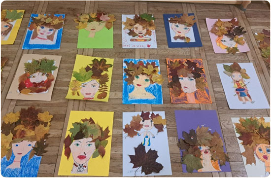 Uczestnicy kółka plastycznego wykonali dziś portrety Pani/Pana Jesieni. W swoich pracach stworzyli barwne fryzury inspirując się barwami aktualnej pory roku. Do swoich prac wykorzystali przygotowane wcześniej z rodzicami liście pochodzące z różnych gatunków drzew, a nad ich twórczością czuwała p. Monika Marat.