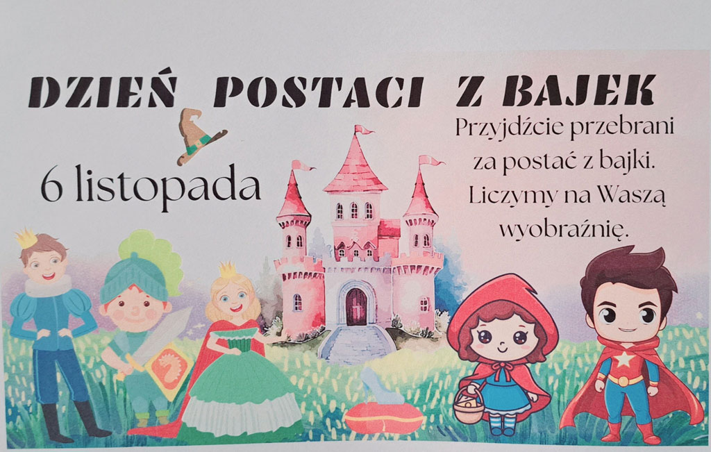 Dziś w naszej szkole zrobiło się naprawdę bajkowo! 💫 Korytarze wypełniły się postaciami z ulubionych bajek – pojawili się superbohaterowie, księżniczki, wróżki, czarodzieje, zwierzątka, piraci i wiele innych niezwykłych bohaterów.