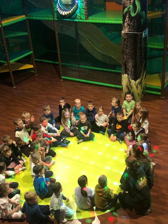 Idealne miejsce na zabawę z przyjaciółmi. Jeszcze nie raz odwiedzimy to miejsce, bo warto! Zabawy sprawnościowe inspirowane ruchem zwierząt, skrzynia skarbów, słodkie krówki, ciepłe posiłki oraz zagadki edukacyjne, taneczne rytmy dżungli,