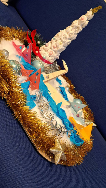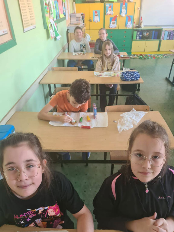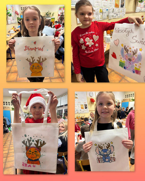 z wykorzystaniem różnych dodatków mocowanych klejem na gorąco. Kreatywność, radość tworzenia i świąteczny klimat towarzyszyły nam przez cały czas.