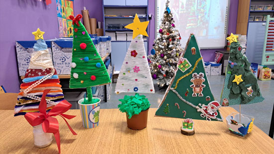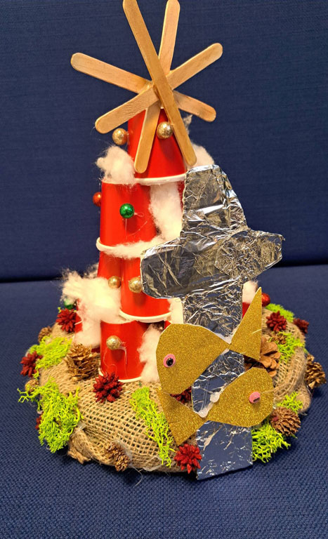 Podczas zajęć dzieci stworzyły wyjątkowe choinki z tektury – oklejane kolorowym papierem lub owijane kolorową włóczką i drucikami kreatywnymi. Każda praca została ozdobiona według własnego pomysłu,